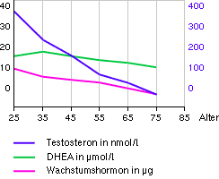 allerdings den physiologischen Abfall der Wachstumshormonbildung, der bereits in der Pubertät beginnt und sich im jugendlichen Erwachsenenalter fortsetzt, und nimmt man einen ursächlichen Zusammenhang zwischen Hormonabfall und Alterung an,